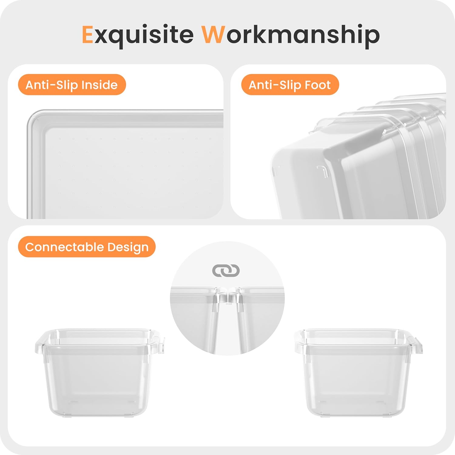 - 【Always Tidy】 ---- These clear organizers are designed to keep everything in place—no shifting. no sliding. no clutter. The stackable design saves space. and the smooth surface wipes clean in seconds. just like acrylic organizers. Use them for bathroom storage like toothbrushes. toothpaste. shampoo. razors. cotton swabs. lotions. creams. soaps. or towels—these bathroom organizers keep everything neat. clean. and always tidy.